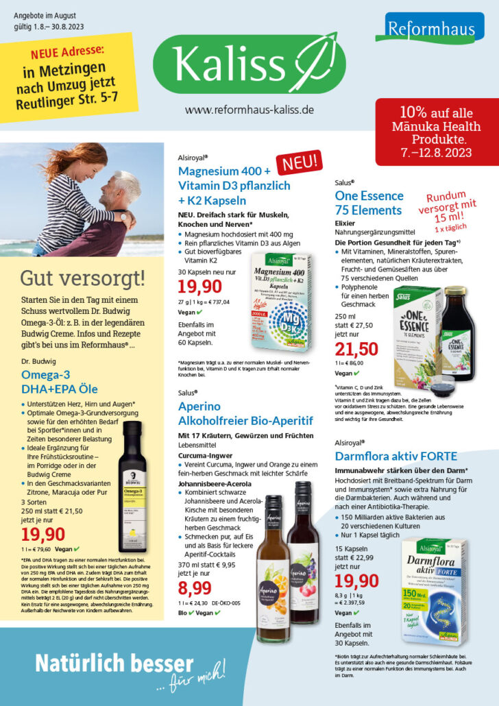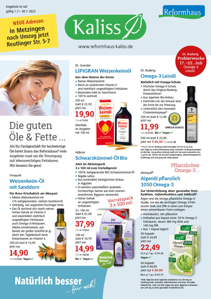 Willkommen im August bei Reformhaus Kaliss! Gesundheit und Genuss stehen diesen Monat im Fokus. Gute Versorgung mit Omega-3 Ölen: Omega-3