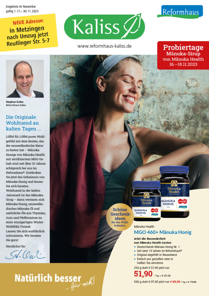 Bunter Herbst mit den Originalen von Manuka Health Die November Highlights im Reformhaus Kaliss! Der November hat Einzug gehalten, und