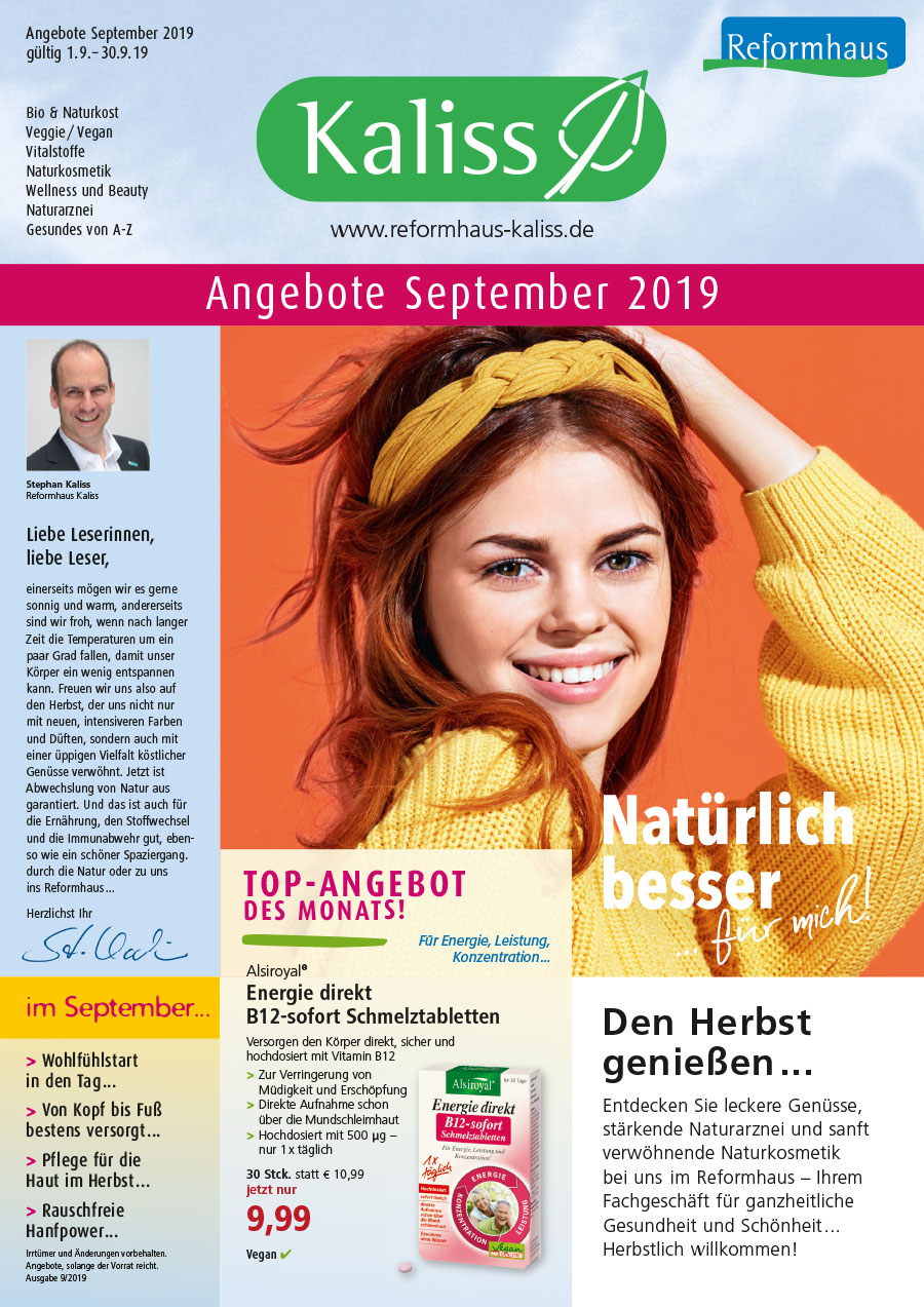 Den bunten Herbst genießen im Reformhaus Kaliss Liebe Leserinnen, liebe Leser, es erwartet Euch ein buntes Herbstprogramm in allen unseren