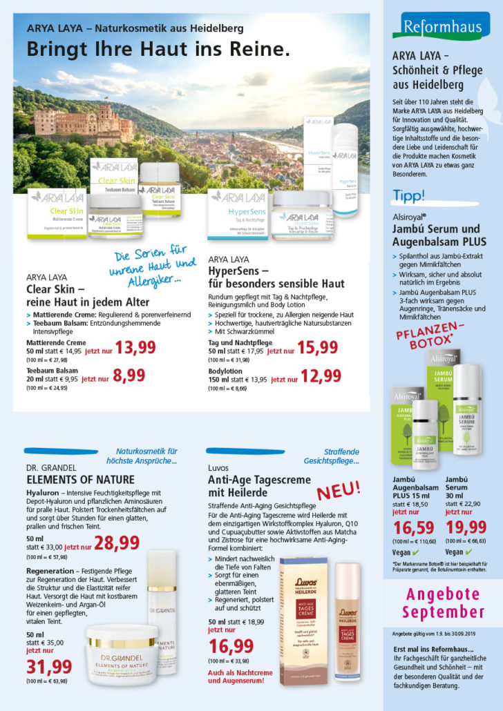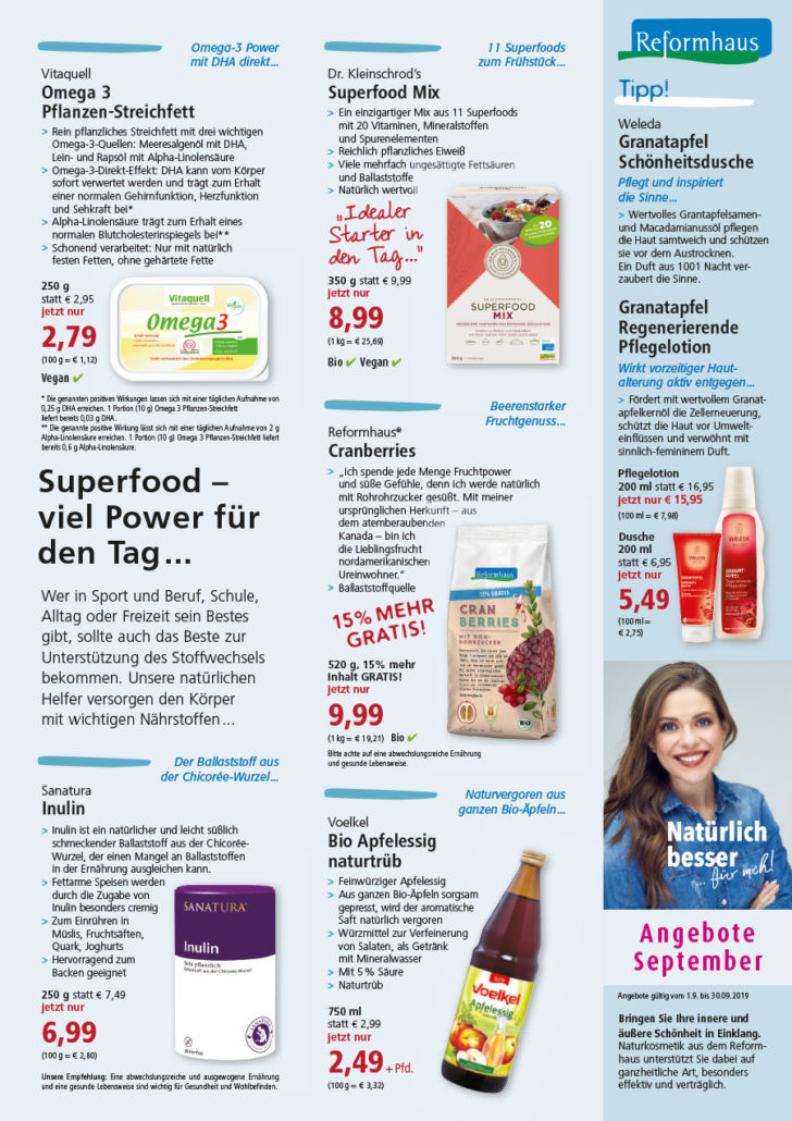 Einerseits mögen wir es gerne sonnig und warm, andererseits sind wir froh, wenn nach langer Zeit die Temperaturen um ein paar Grad fallen, damit unser Körper ein wenig entspannen kann. Freuen wir uns also auf den Herbst, der uns nicht nur mit neuen, intensiveren Farben und Düften, sondern auch mit einer üppigen Vielfalt köstlicher Genüsse verwöhnt. Jetzt ist Abwechslung von Natur aus garantiert. Und das ist auch für die Ernährung, den Stoffwechsel und die Immunabwehr gut, ebenso wie ein schöner Spaziergang, durch die Natur oder zu uns in Reformhaus Kaliss.