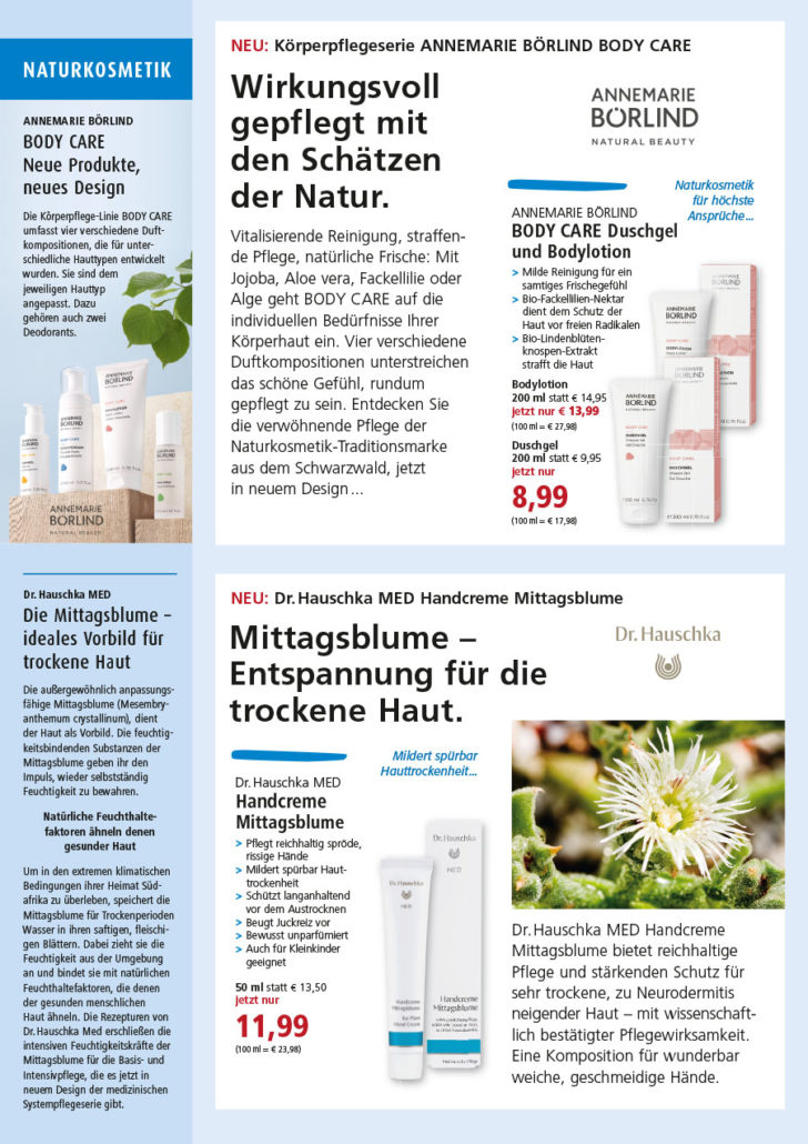 Mit der neuen Body Care Körperpflege aus dem Hause Börlind. Vitalisierende Reinigung, straffende Pflege, natürliche Frische: Mit Jojoba, Aloe vera, Fackellilie oder Alge geht BODY CARE auf die individuellen Bedürfnisse Ihrer Körperhaut ein. Vier Duftkompositionen unterstreichen das schöne Gefühl, rundum gepflegt zu sein.