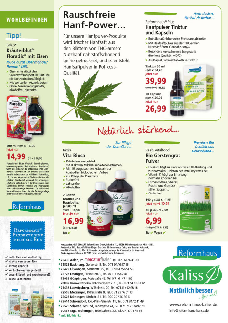 Rauschfreie Hanfpower von Reformhaus Plus.